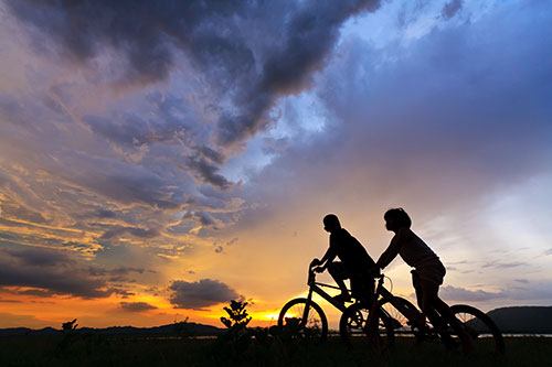 - Stay Visible – Cyclists are already small on the road compared to normal vehicle traffic. It is essential that you wear bright colors for daytime riding and reflective materials when riding at night. For your bicycle, have reflectors on the front and back of the bicycle and have a white headlight plus a red tail light when riding around sunrise, sunset, or at night. Regardless of the time of day, be sure to have side reflectors on both wheels of your bicycle.